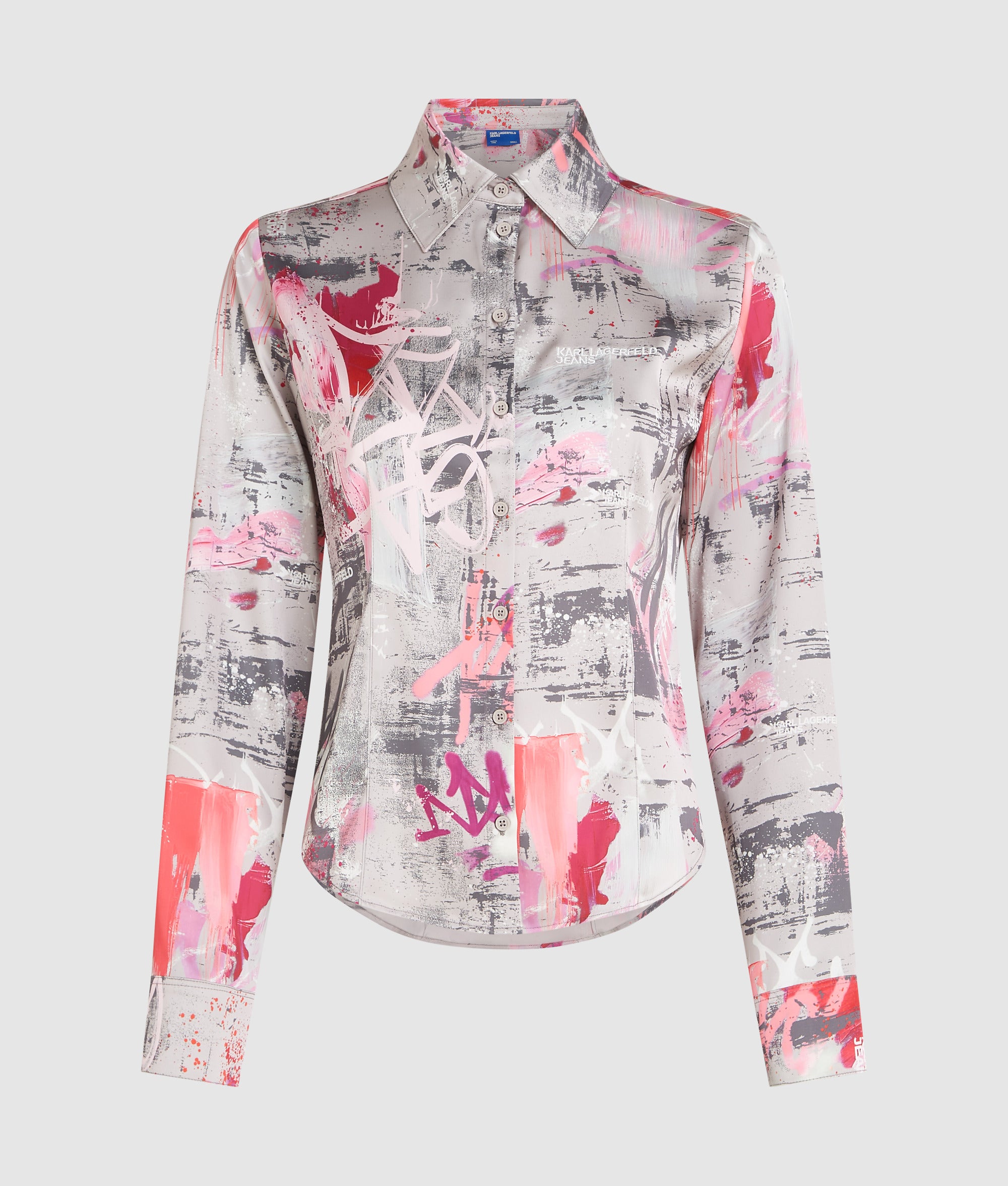 This lightweight shirt features a vibrant paint-effect design that energizes your everyday look.