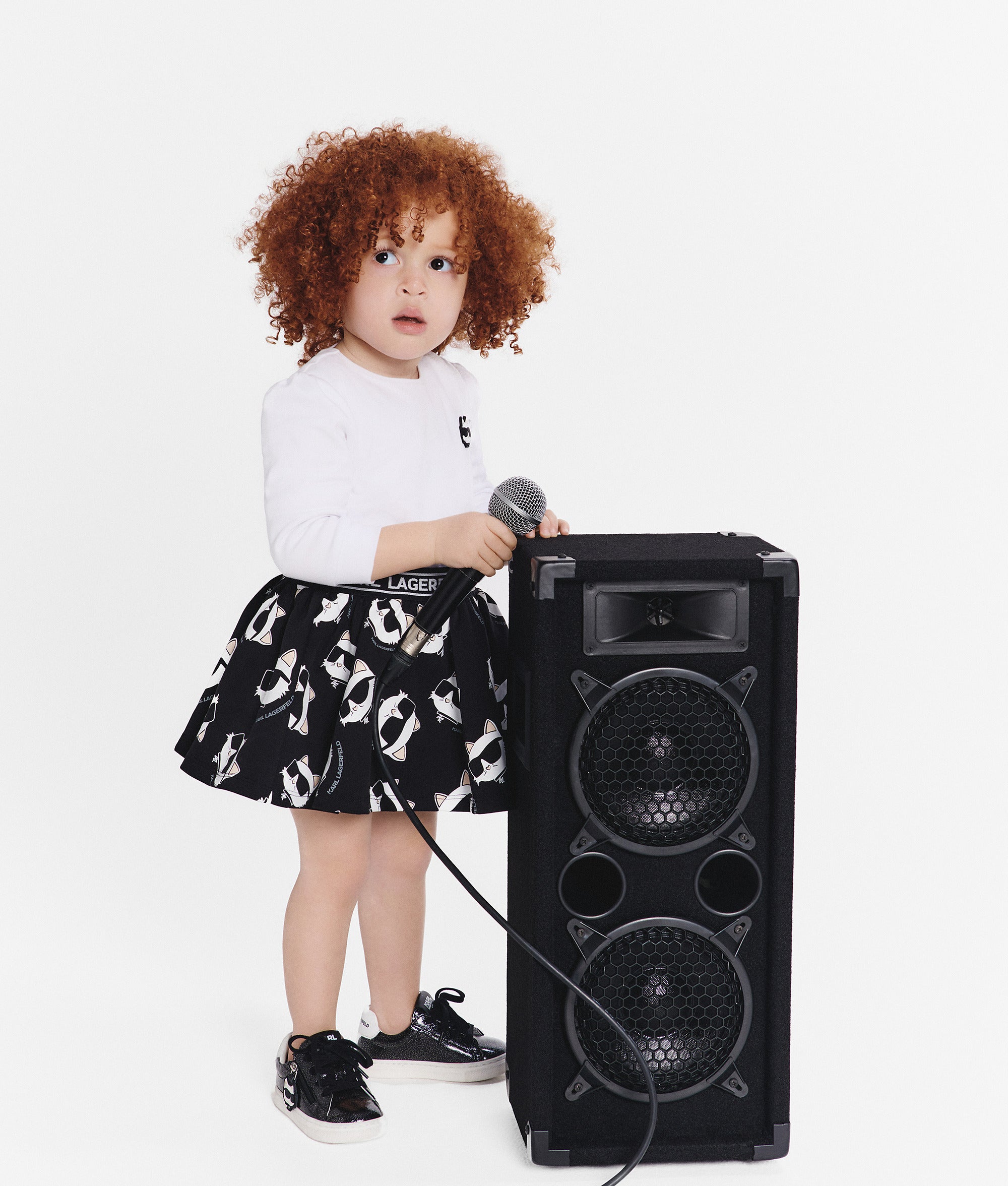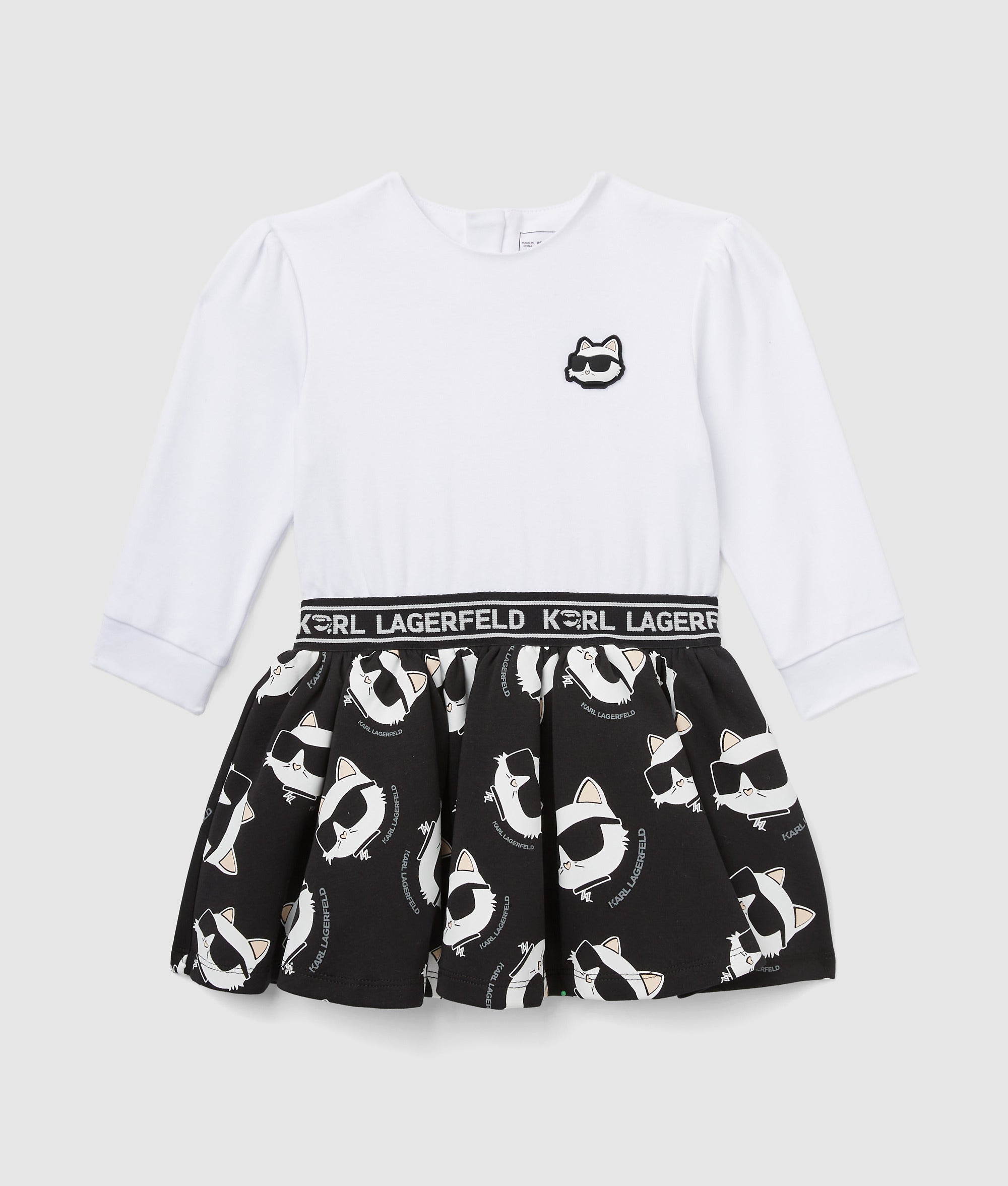 Everyday sparkle. Ikon style. This comfortable dress features long sleeves. a logo-tape waistband. and an all-over-print skirt ?? perfect for playful days and party moments.?