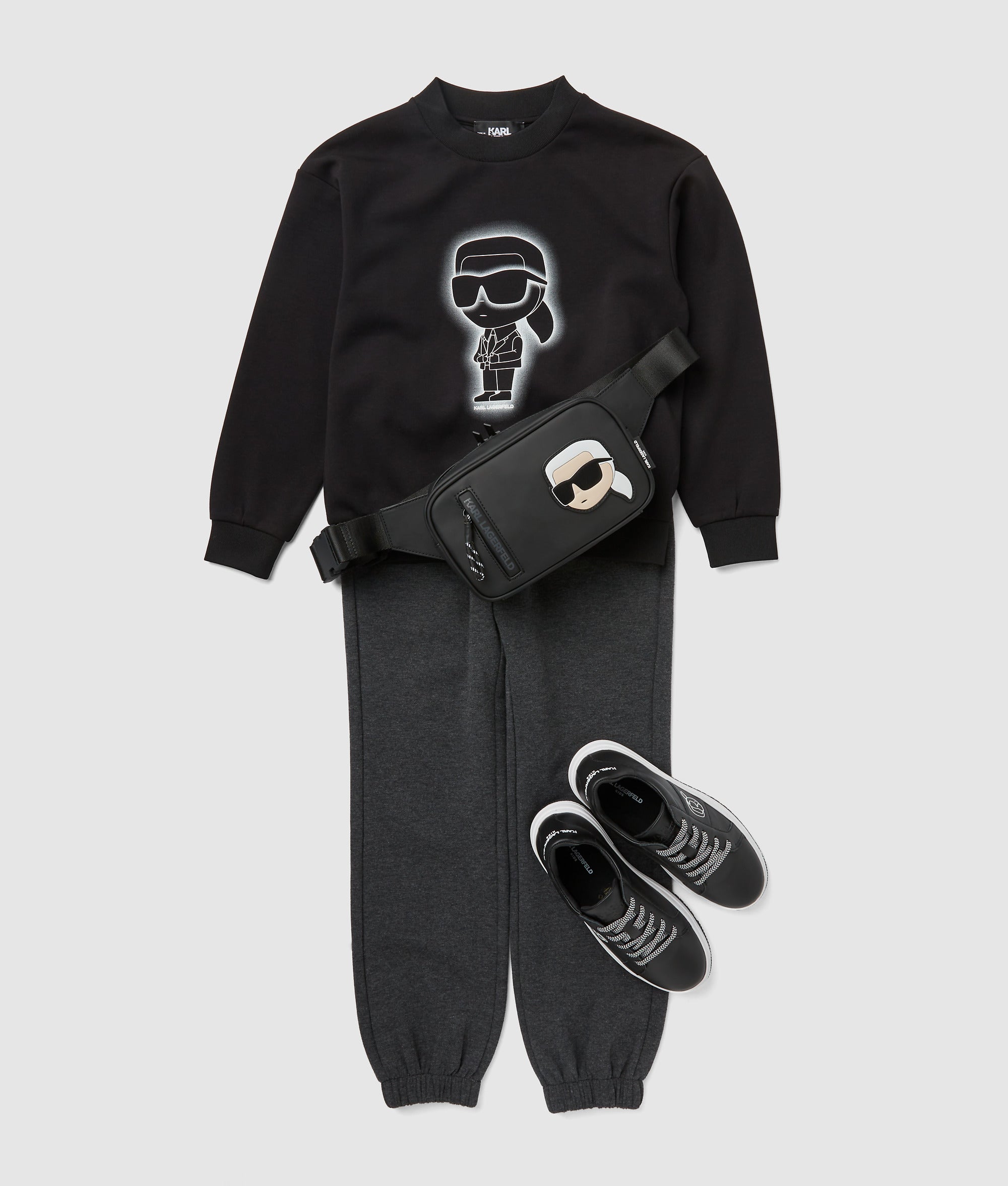 This soft jersey sweatshirt features relaxed dropped shoulders and bold Ikon Karl artwork. delivering impact to any outfit on school runs. park days. or laid-back weekends.