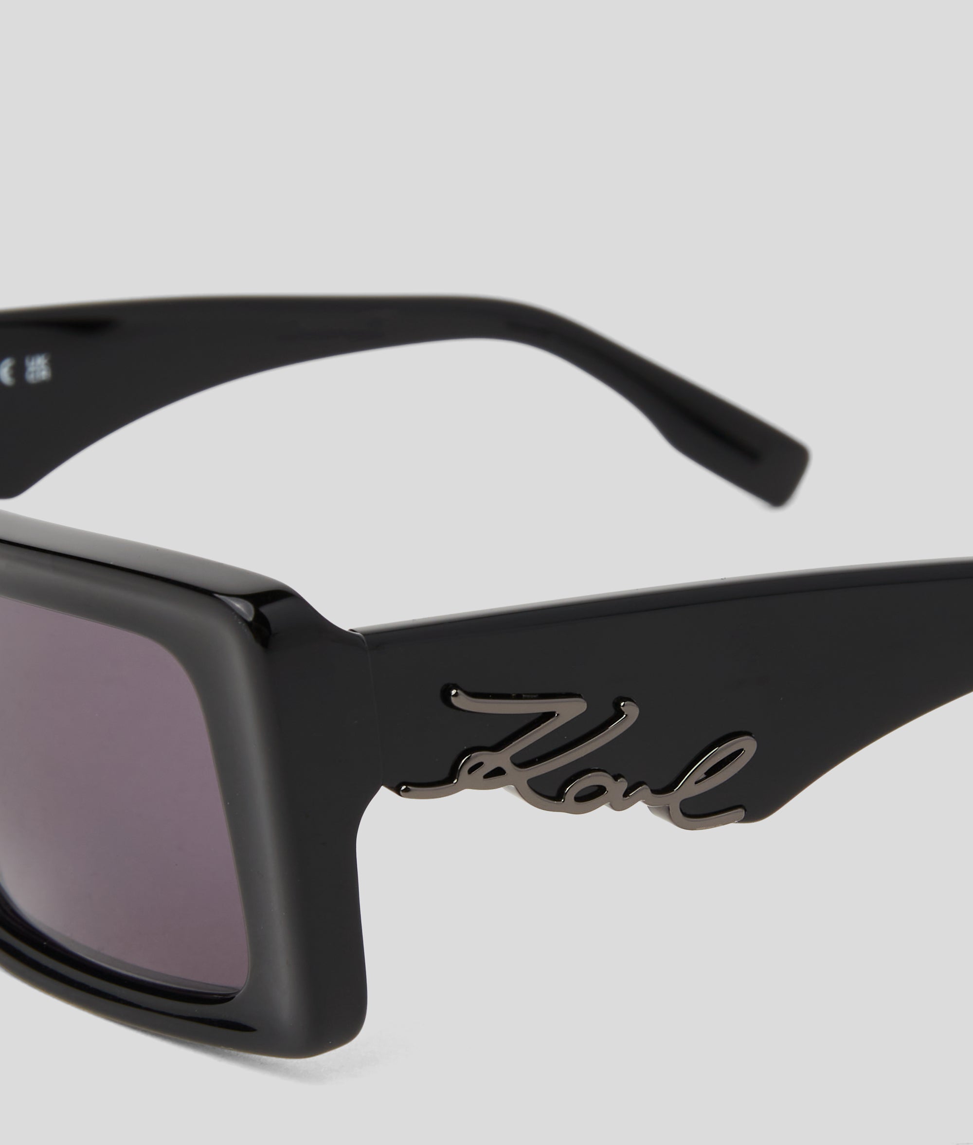 Bold rectangular frames define these sunglasses. featuring distinctive cut-out KARL Signature detailing at the arms.