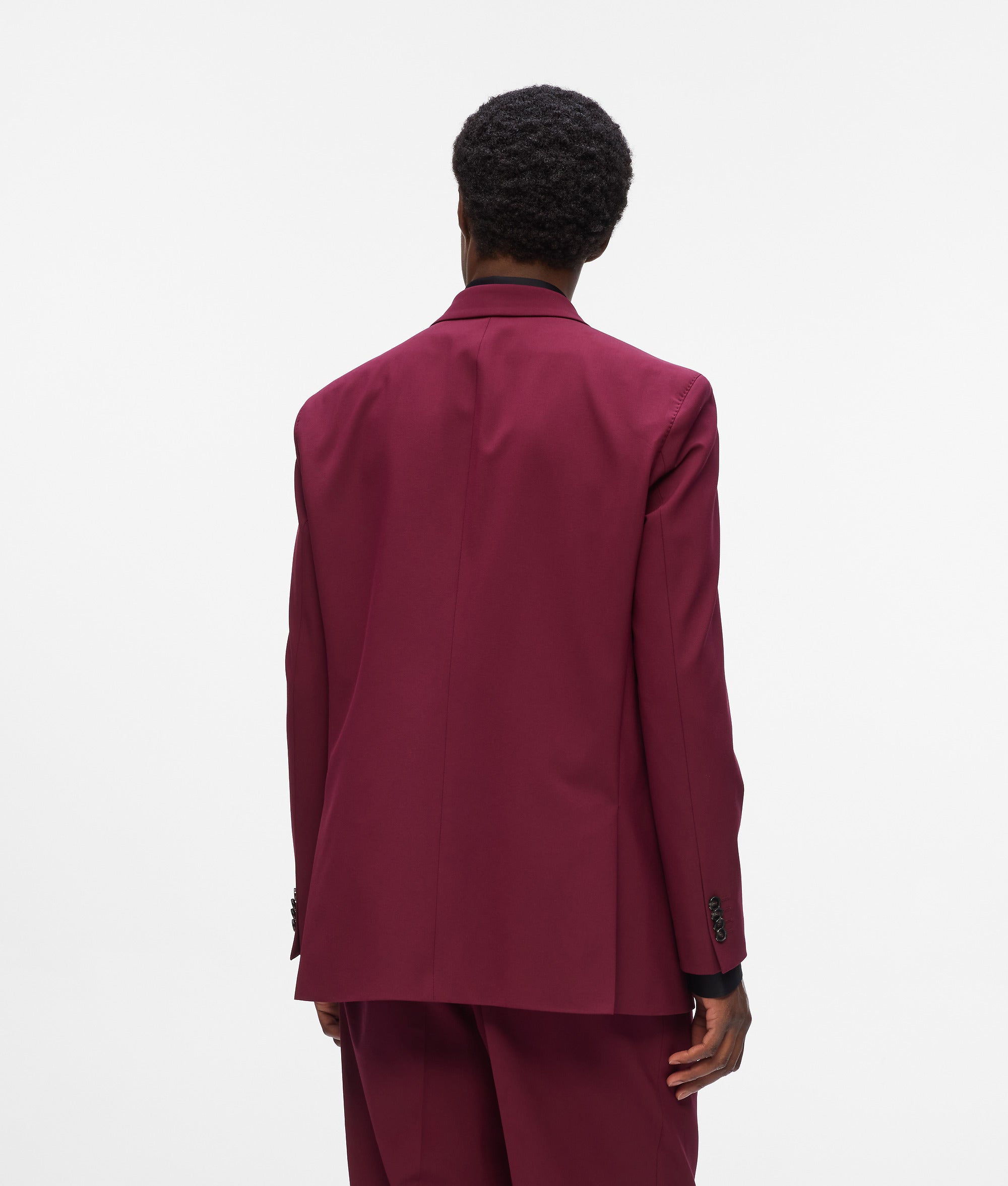 Structured shoulders sculpt the silhouette. while a tailored waist sharpens the form of this double-breasted blazer. A subtle logo detail refines the piece with quiet confidence.