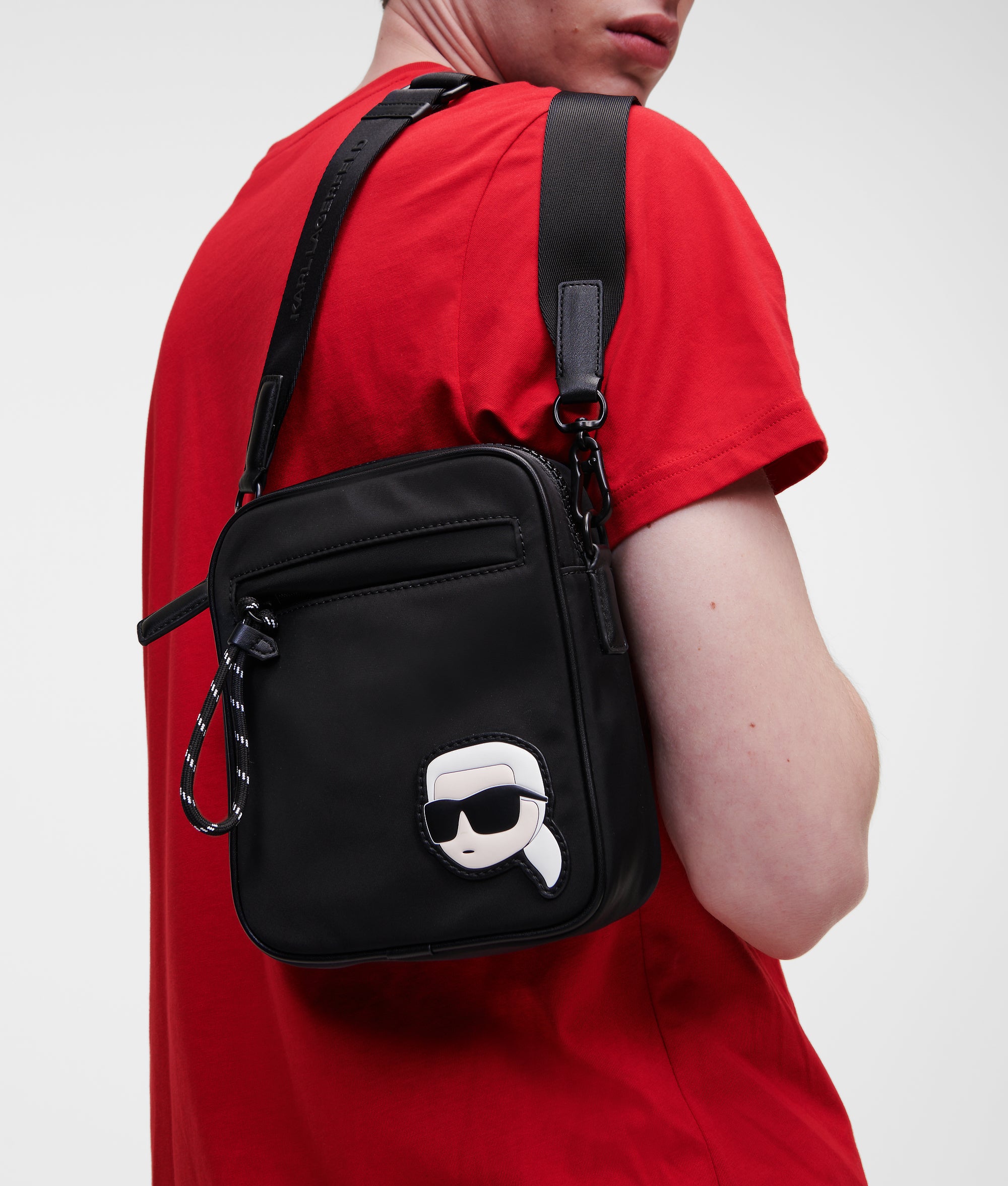 A classic silhouette. clean lines. and functional detailing make this crossbody bag an everyday accessory essential. Made from durable nylon. this casual-cool staple is adorned with a KARL logo webbing strap and leather IKON Karl artwork patch.