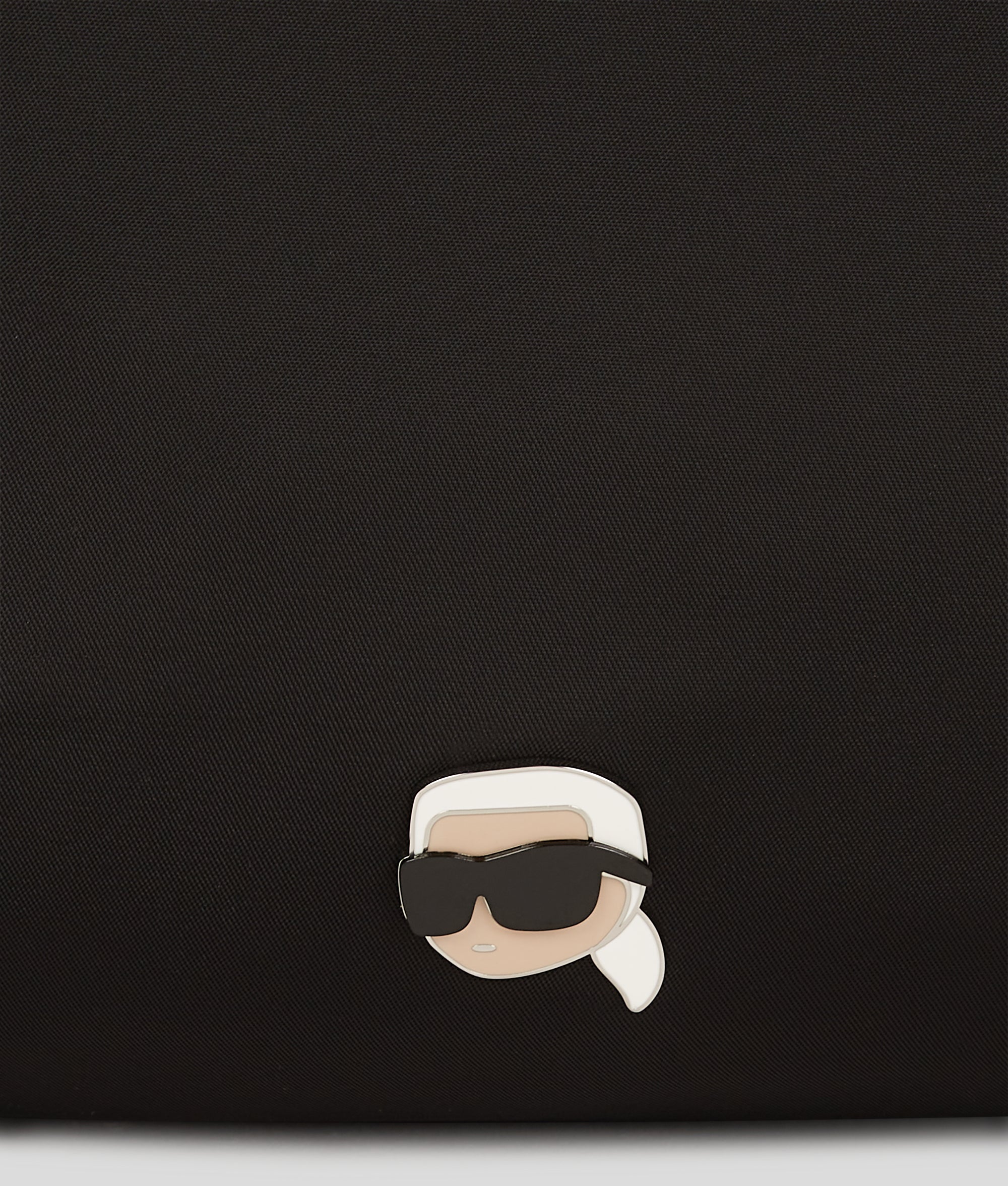 Combining playful elements with elevated fashion. this chic hobo bag features a charming Ikon Karl pin. A secure zip top closure ensures essentials are kept safe. while the adjustable strap allows for personalized wear. making it a must-have accessory.