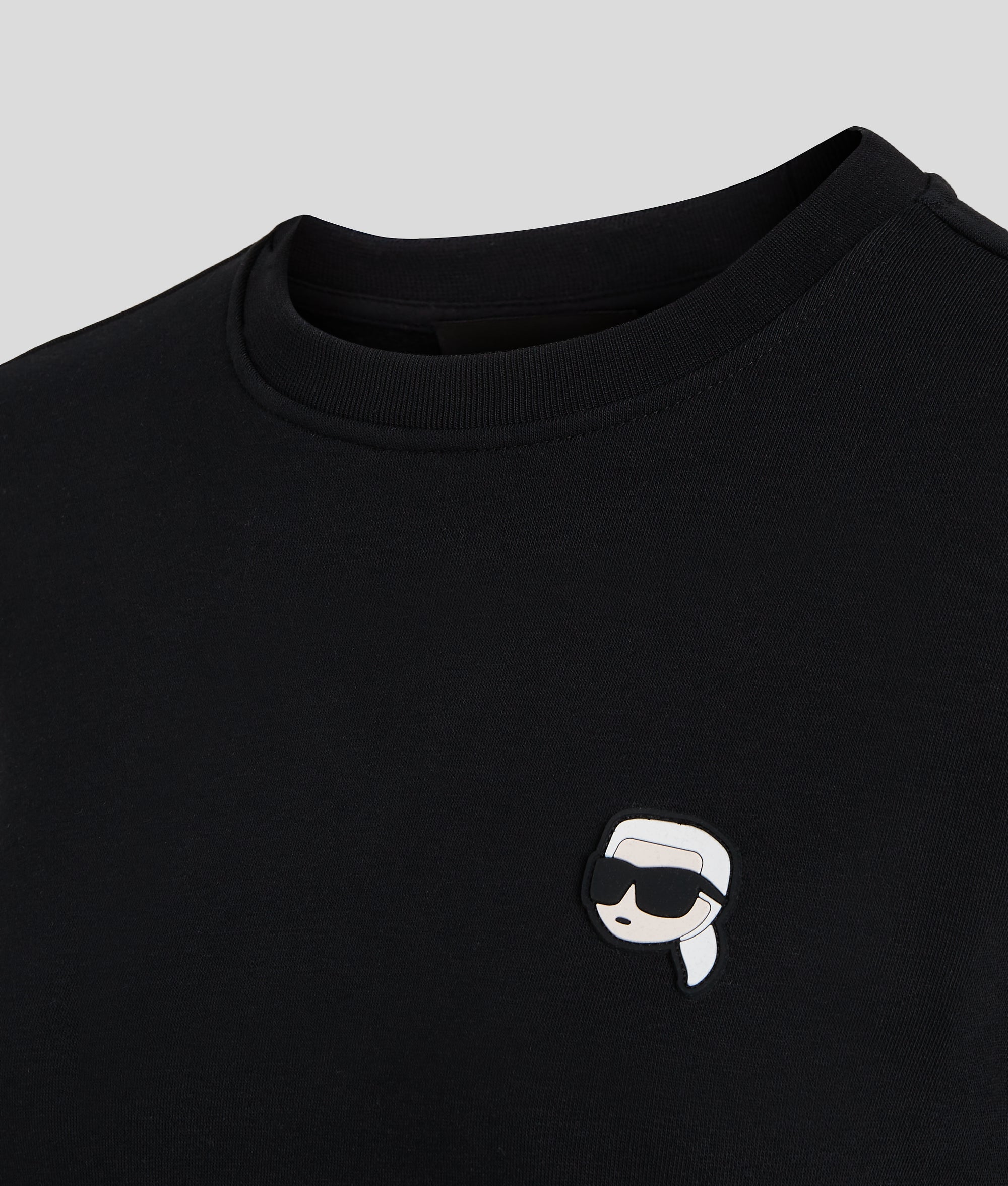 This luxe brushed sweatshirt features a classic crew neck. accented by light ribbing. and is adorned with an IKON Karl or Choupette patch for a playful touch.