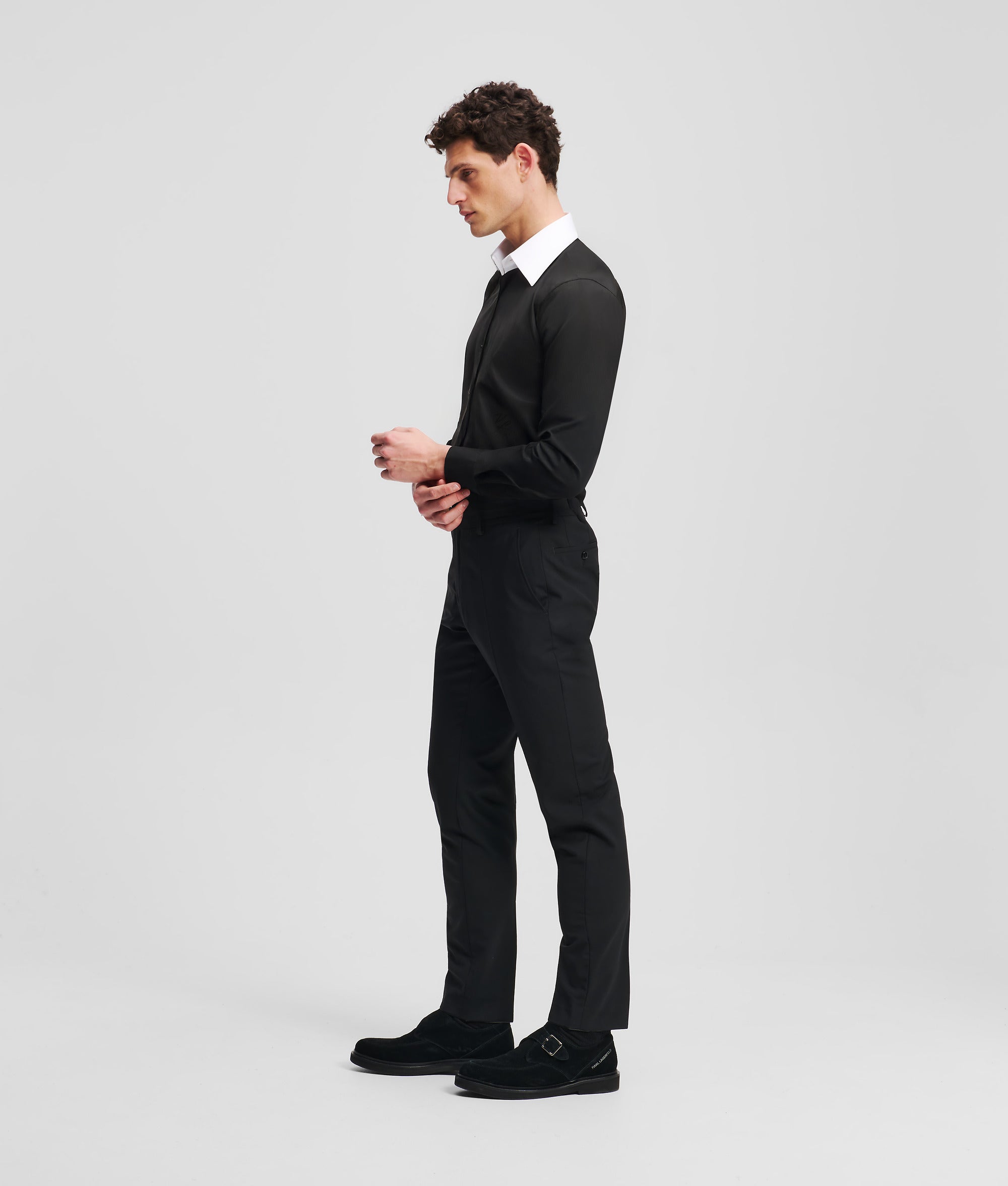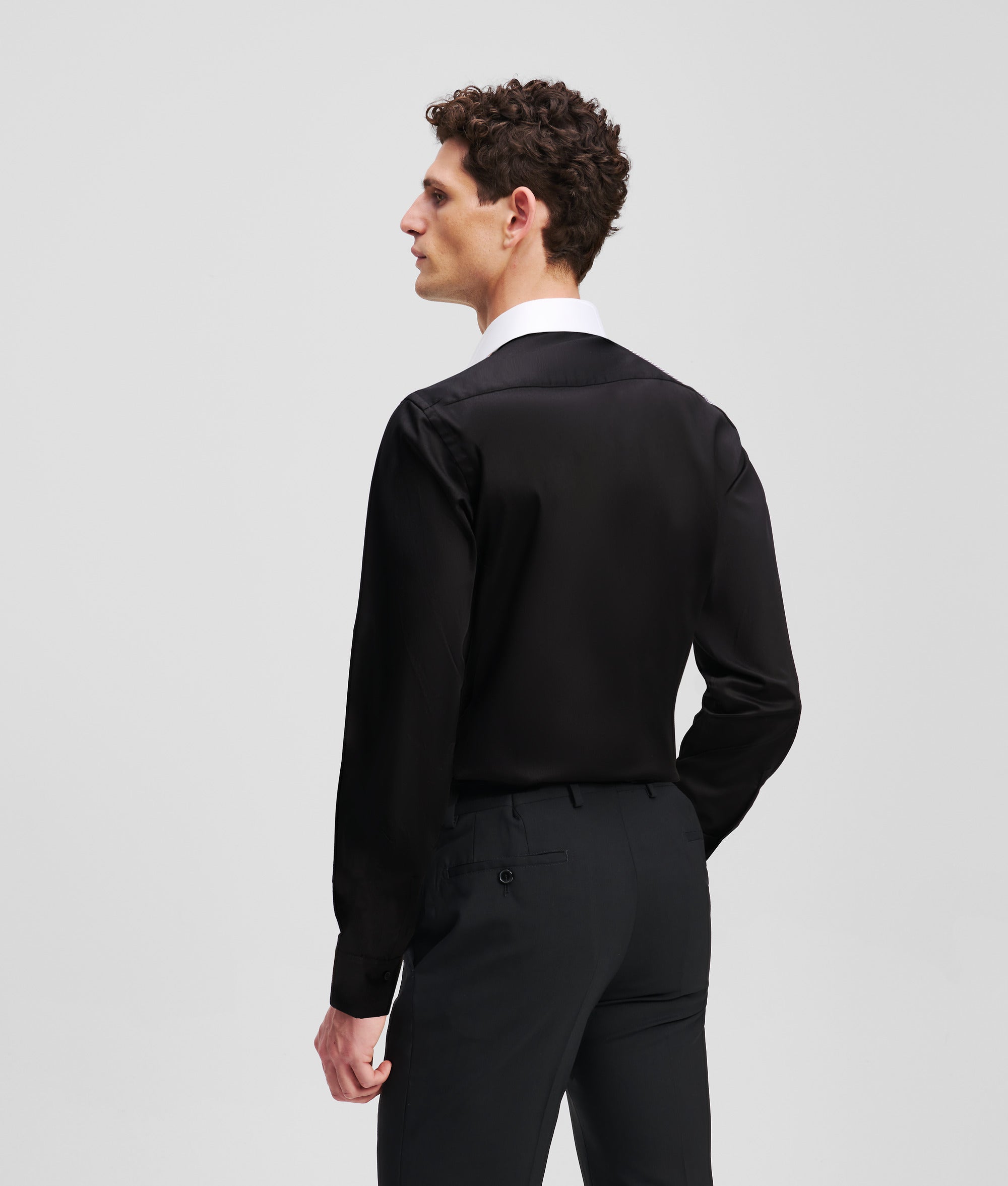 Discover a modern fit silhouette in this button-up shirt that redefines casual elegance. A striking. contrasting pointed collar pairs beautifully with signature KARL Autograph embroidery to add a unique touch to this timeless wardrobe piece.