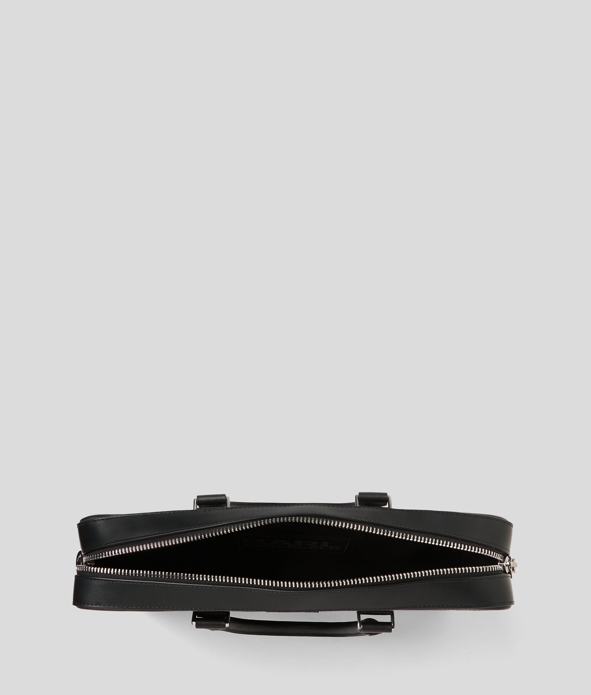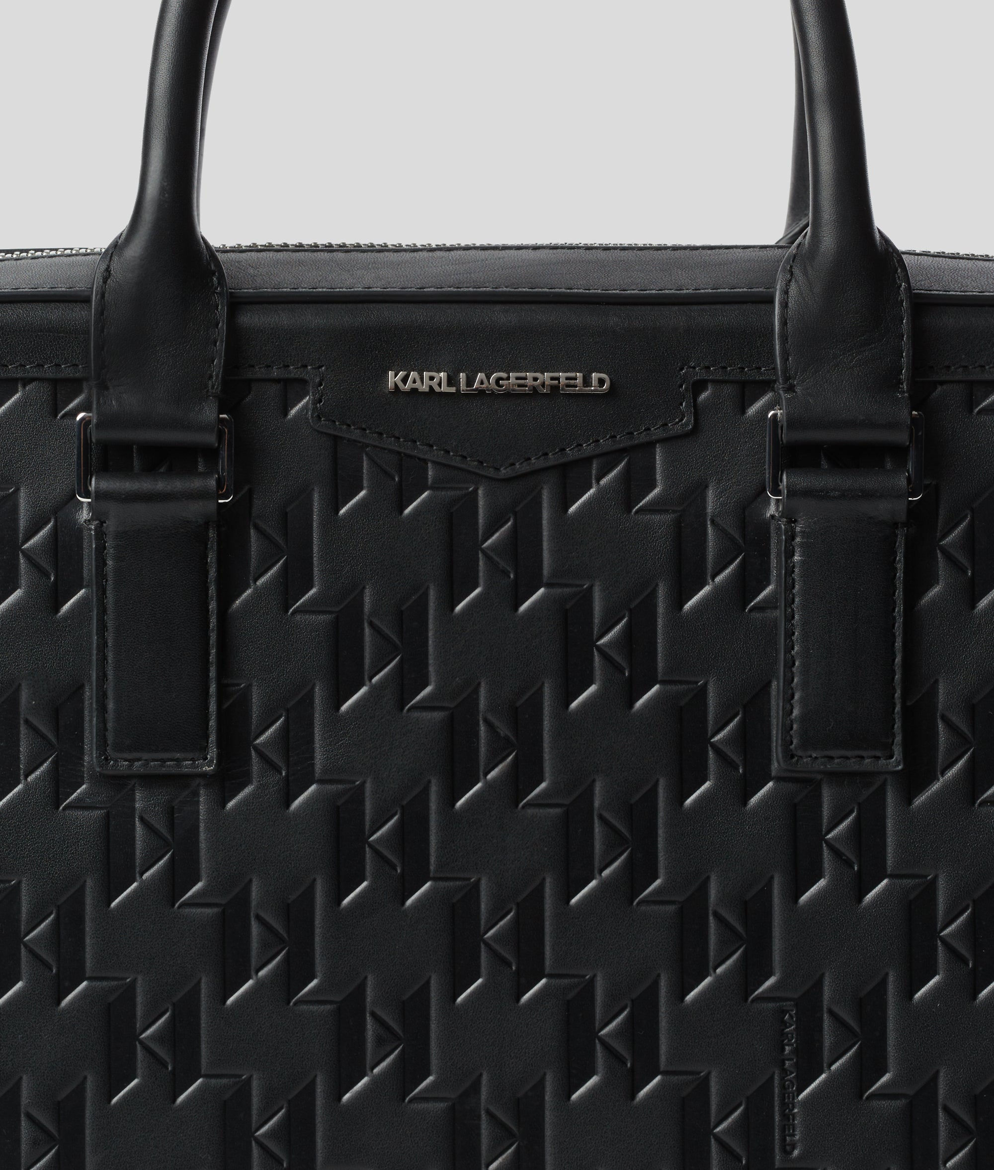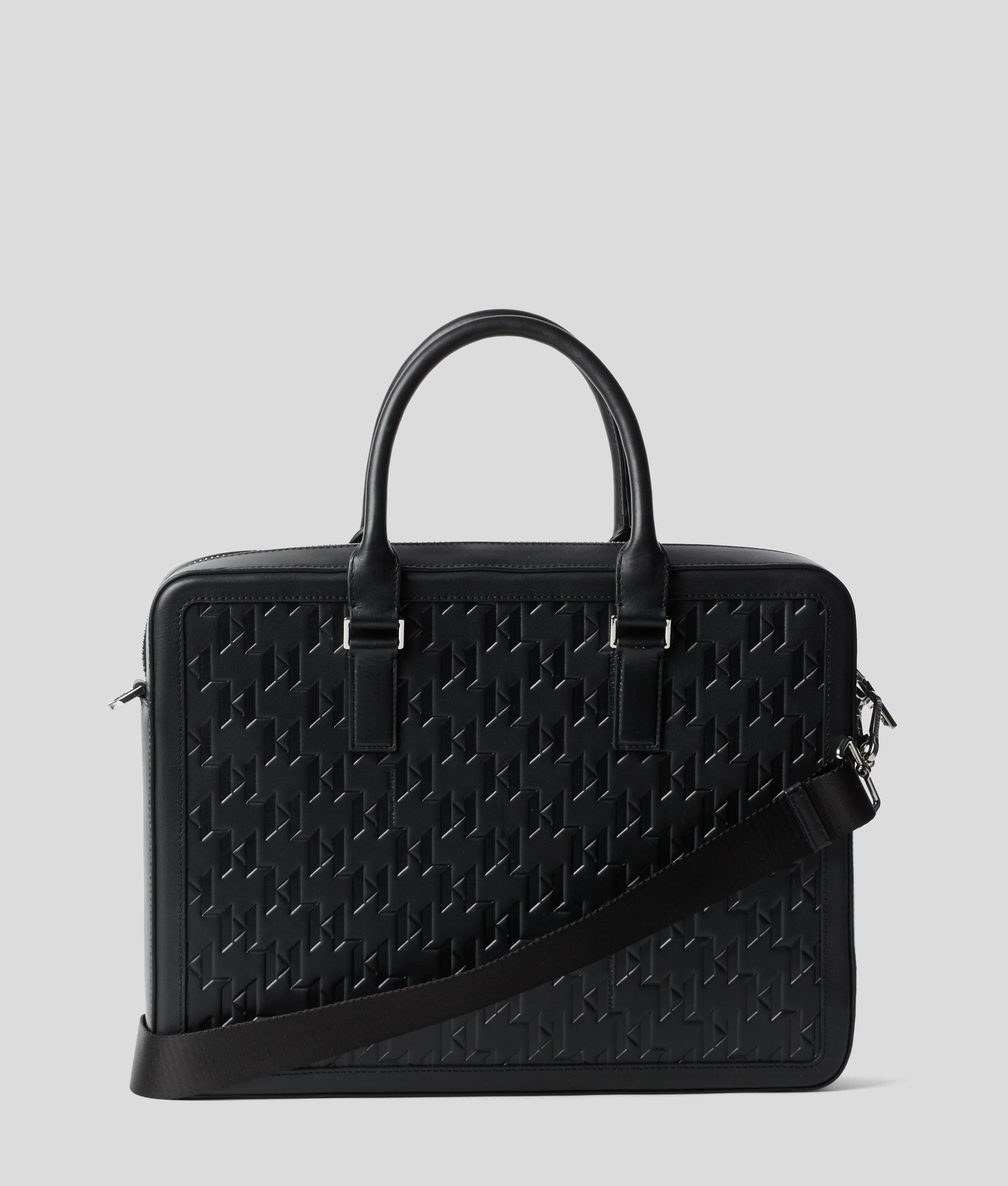 An elevated office staple crafted from KARL Monogram-embossedleather. This ultra-sleek and sophisticated briefcase unites statement style withessential everyday functionality.