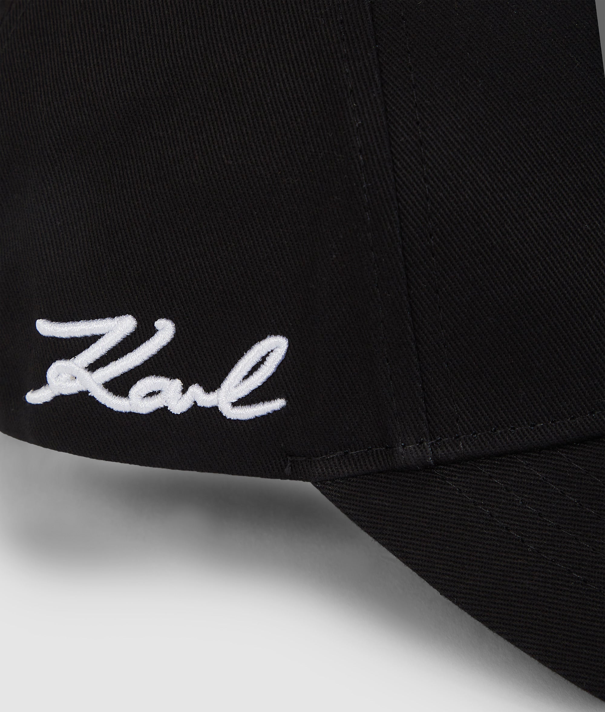 Contrasting Karl Signature embroidery adds a distinctive touch to this classic cap. Designed for effortless wear. it features an adjustable strap to ensure a comfortable fit. Perfect for elevating any casual look.