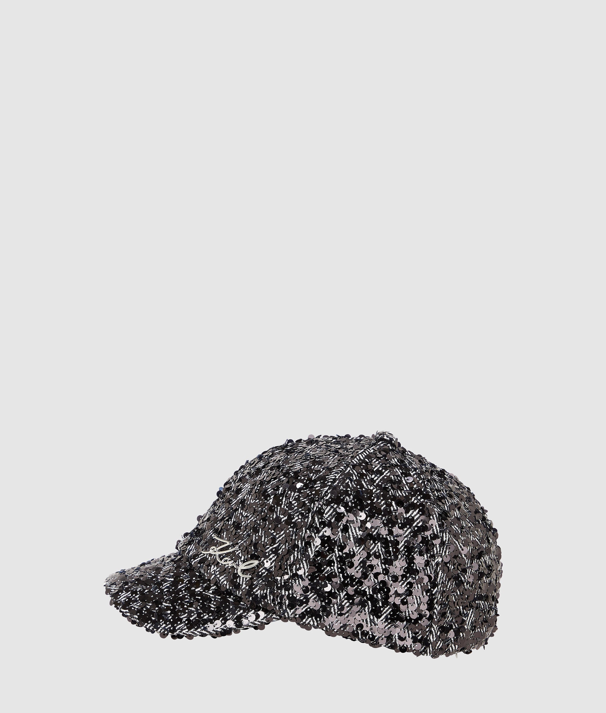All-over sequin embellishment and Signature hardware transform this classic baseball cap into a statement piece.?