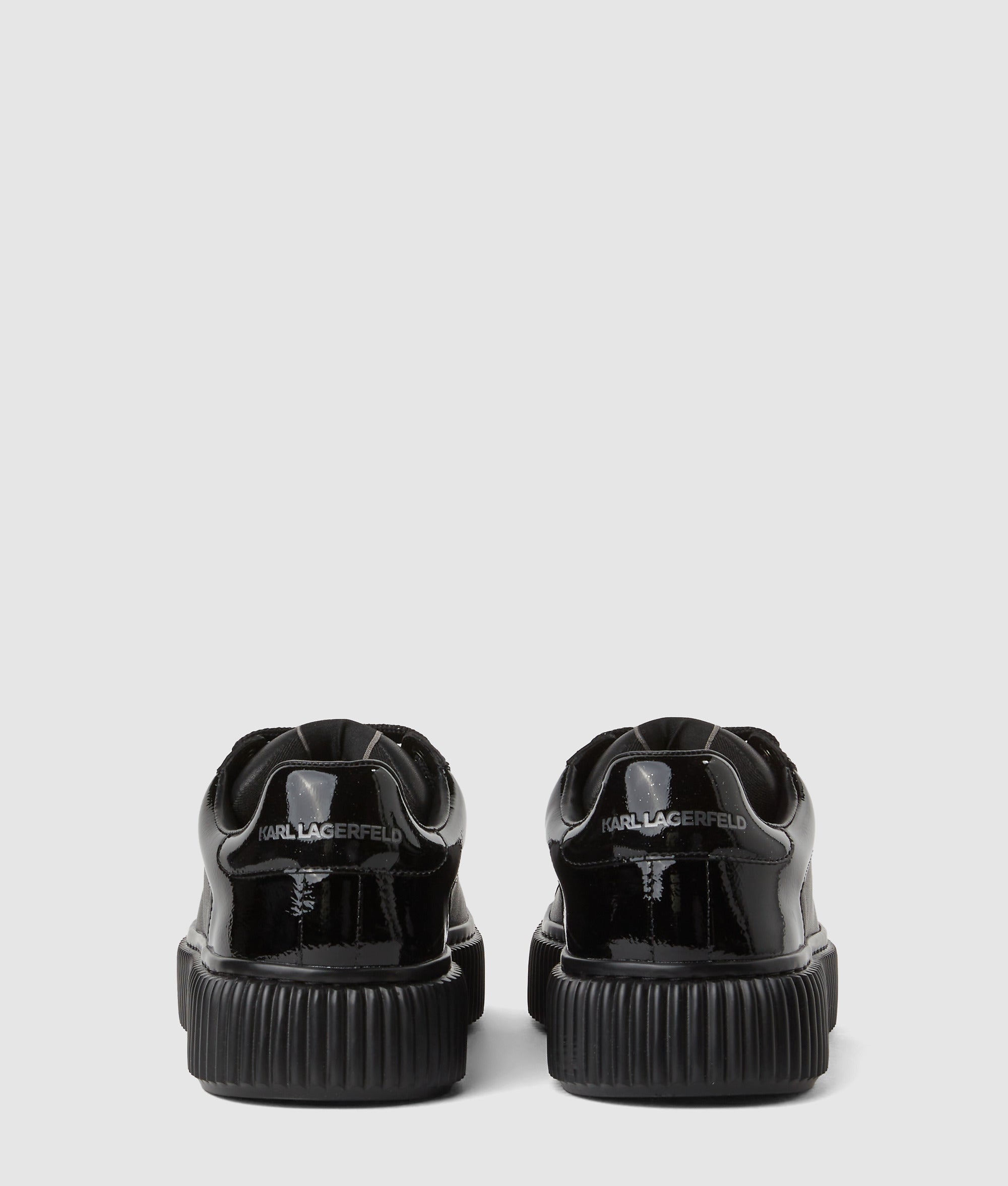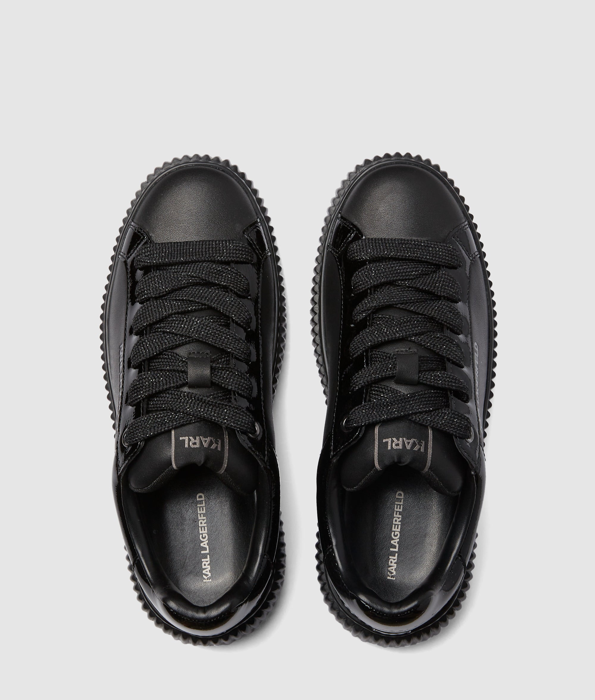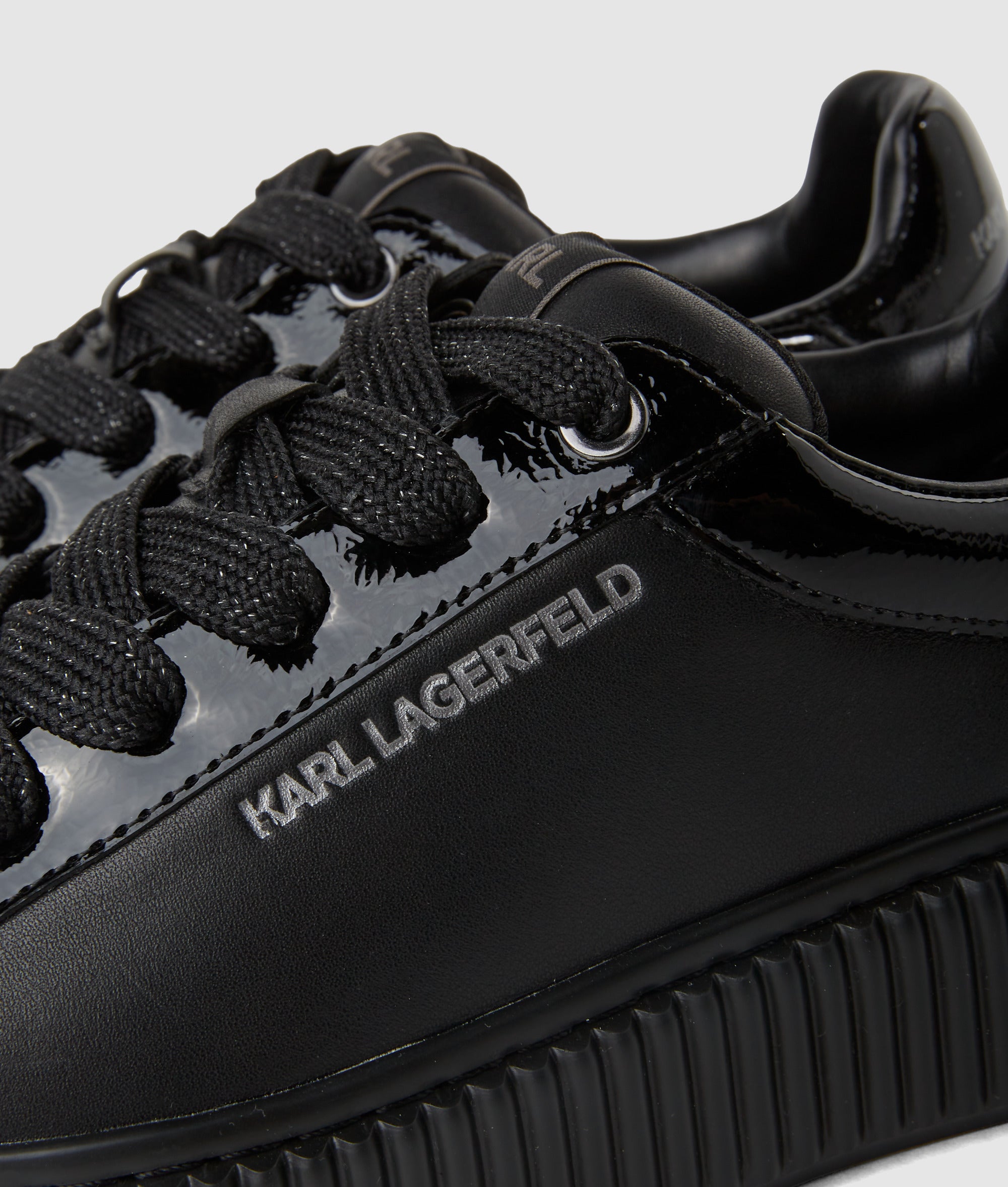 These lace-up sneakers effortlessly combine style and versatility. Crafted from sleek leather with a subtle. metallic KARL LAGERFELD logo embellishment. they pair perfectly with jeans or add edge to smart pants.