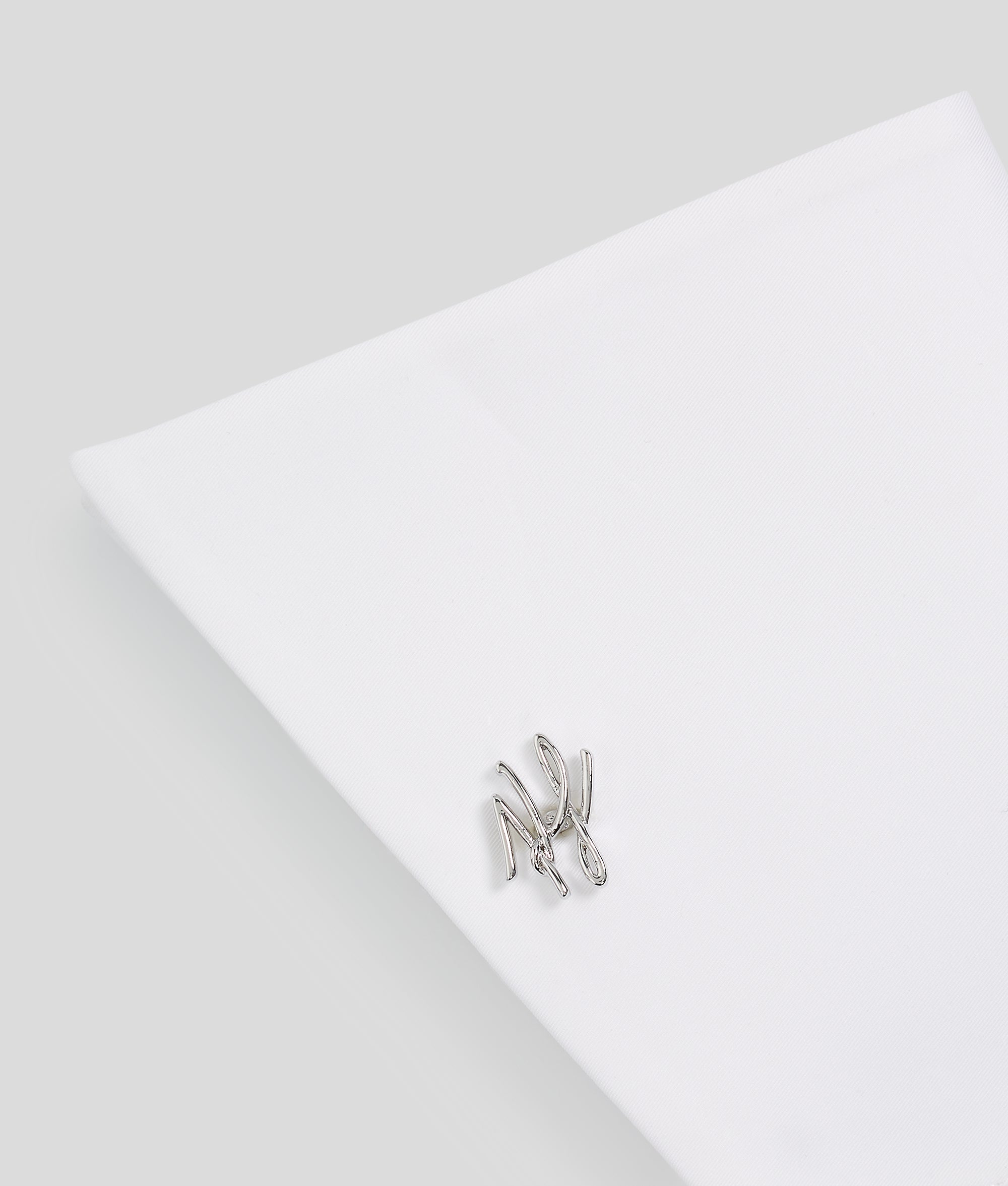 For a polished yet irreverent finish to evening wear. these white cotton cuffs are guaranteed to make a statement. The playfully chic accessories are finished with elegant KARL Autograph cufflinks for an iconic flourish.