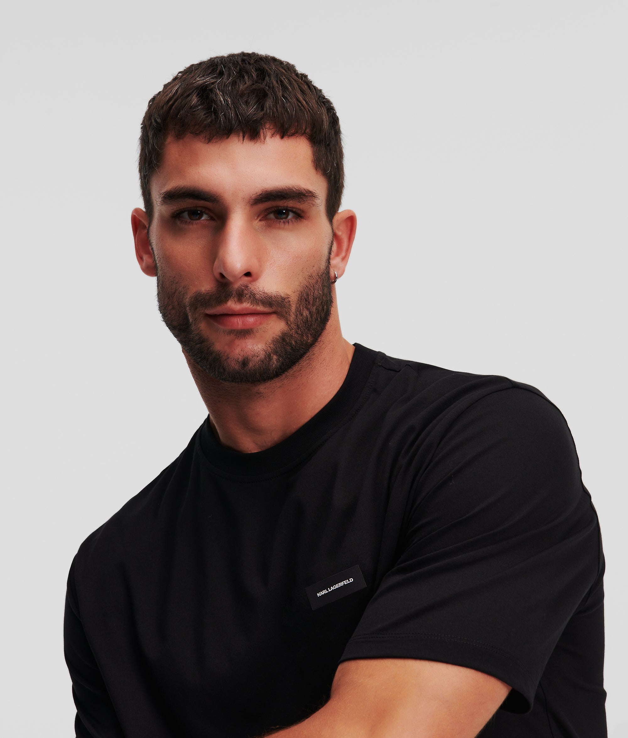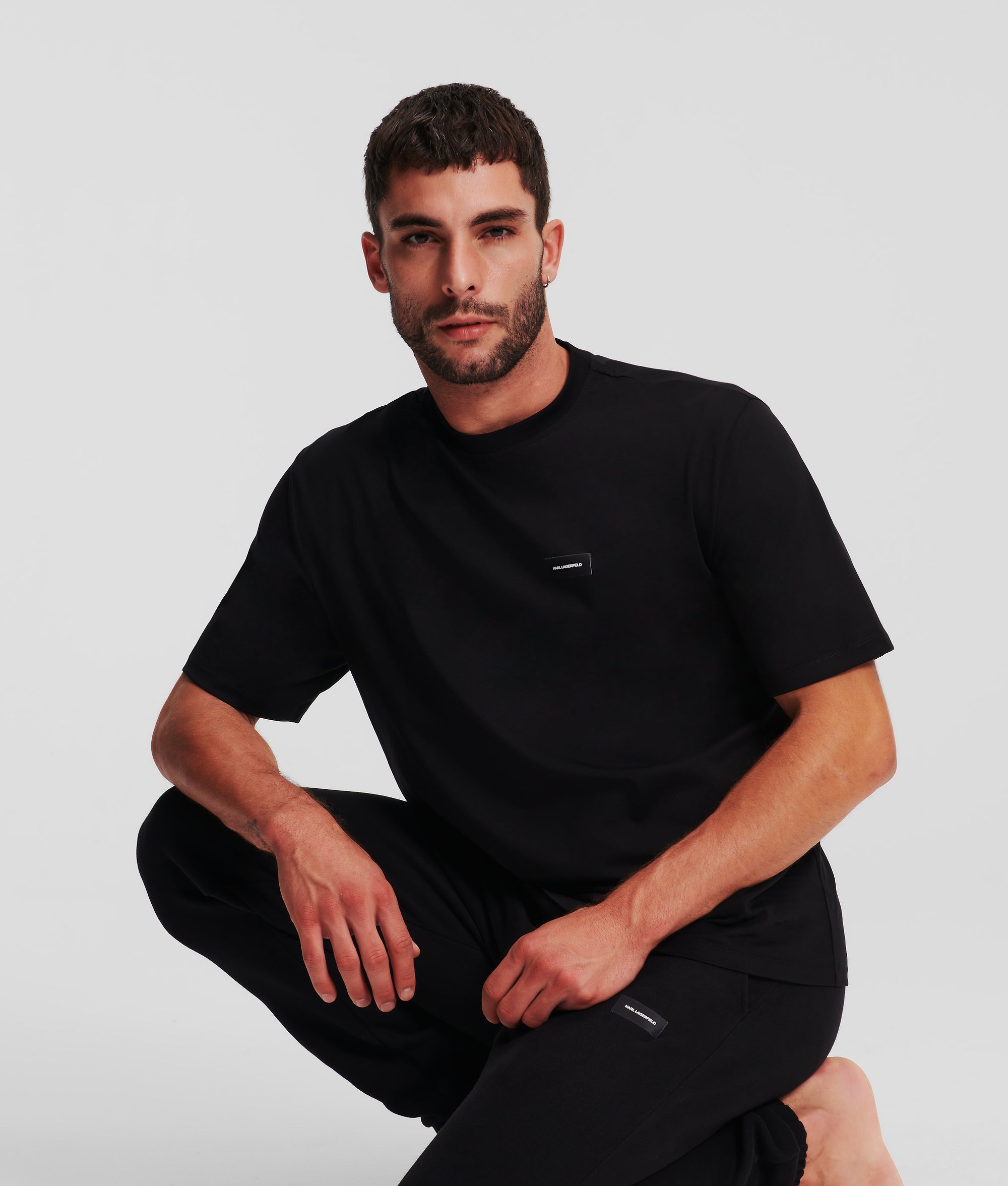 Organic cotton jersey caresses the skin in this loungewear T-shirt. Ribbed crew neck. short sleeves. and a KARL LAGERFELD logo tab offer refined relaxation.