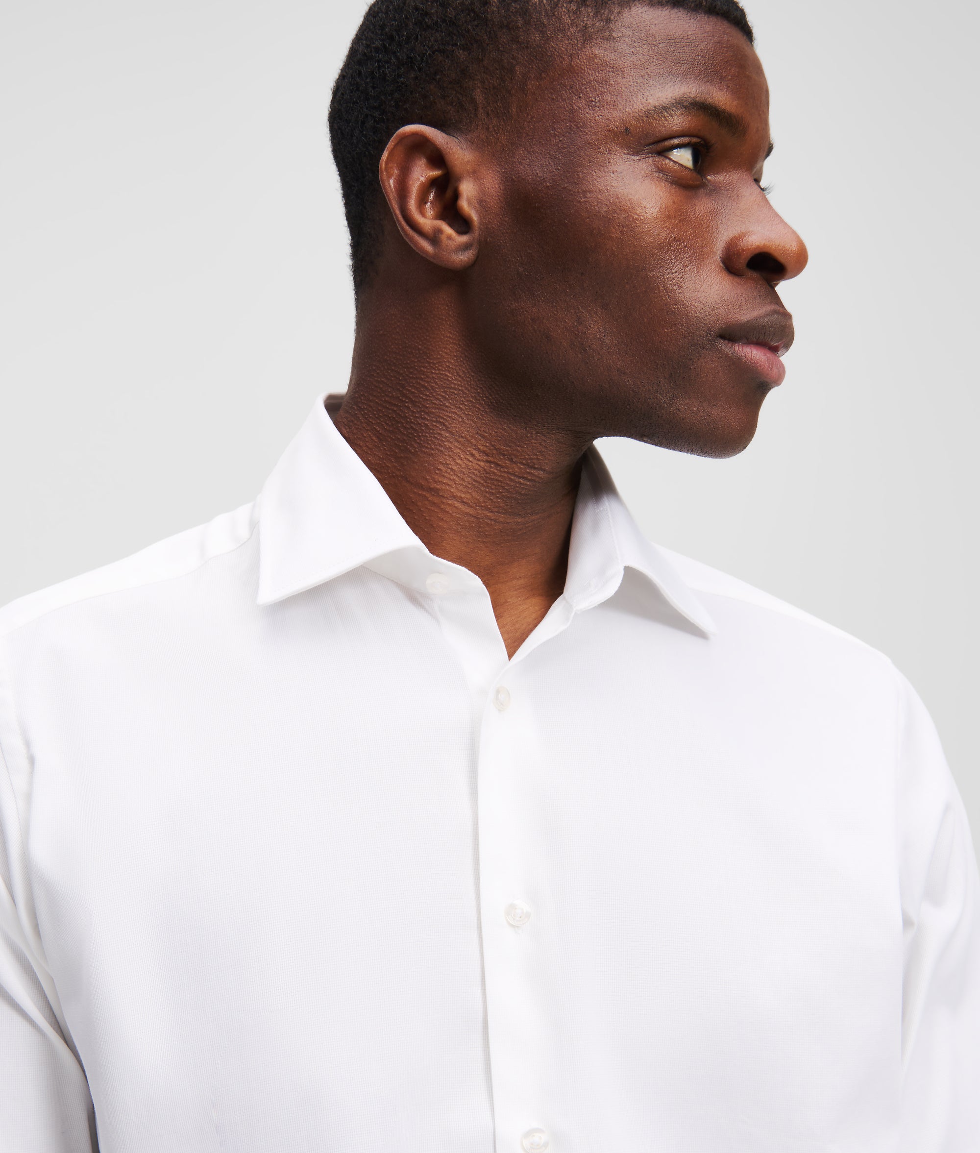 This modern-fit shirt is a must-have for every wardrobe. The clean spread collar and button-down front offer timeless. tailored details. while the modern fit offers a sleek silhouette that sits close to the body.?
