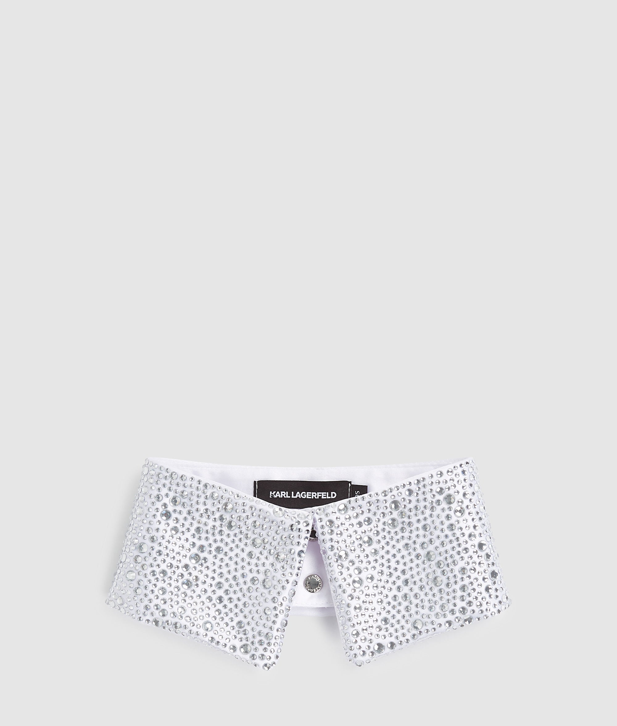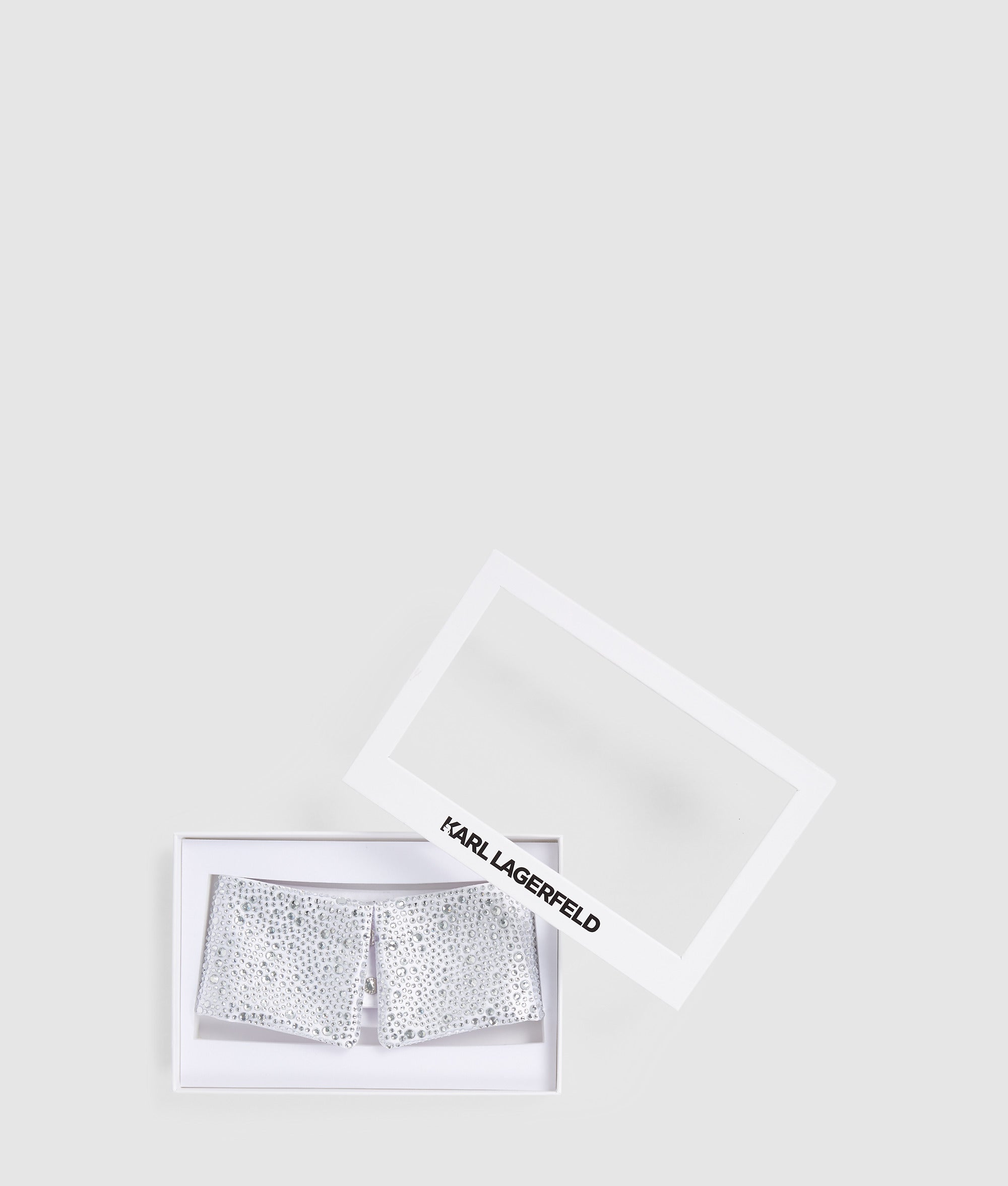 Transform any outfit with this exquisite satin collar. adorned with radiant rhinestones. Hand-selected by KARL LAGERFELD’s Design Director Hun Kim. it effortlessly elevates day-to-night looks.
