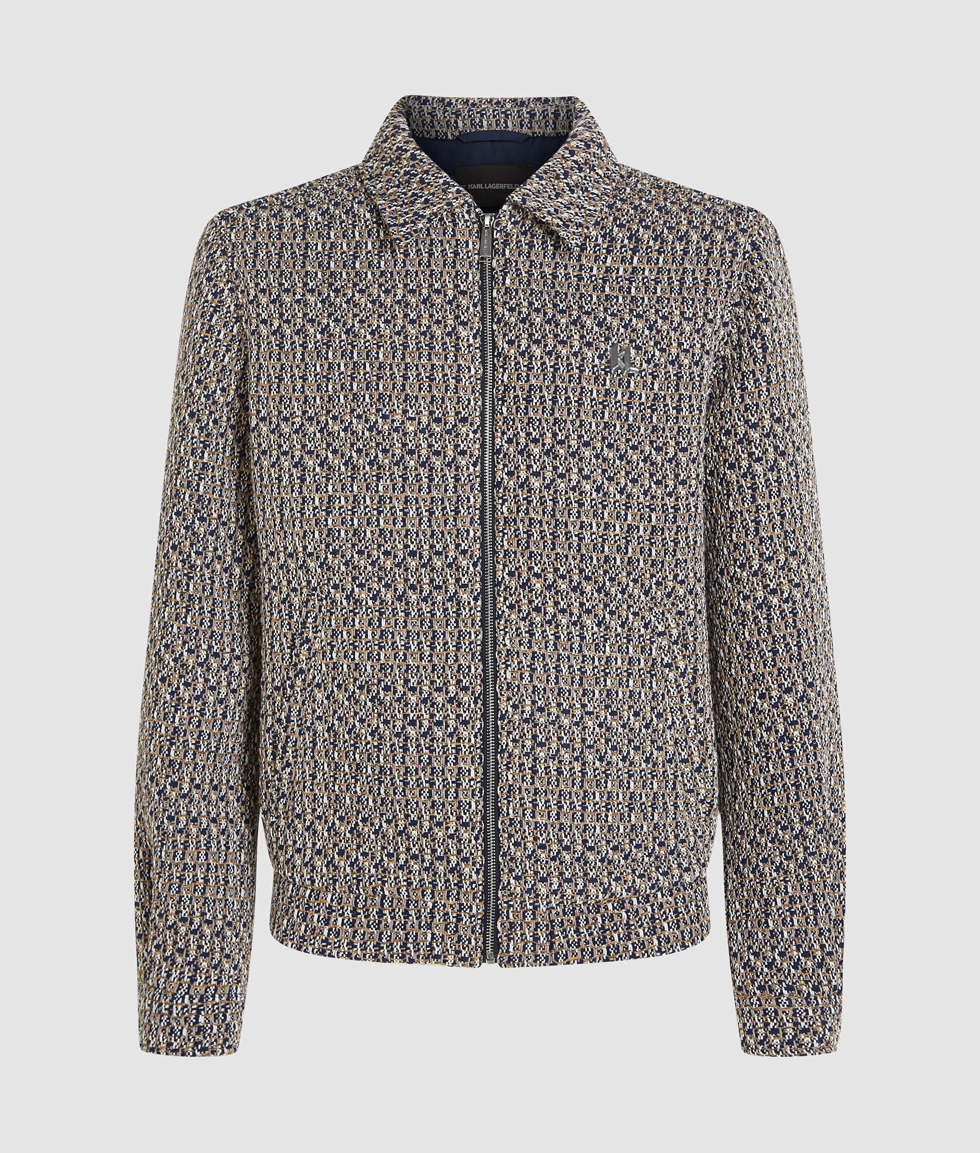 Zip-up bouclé tweed jacket